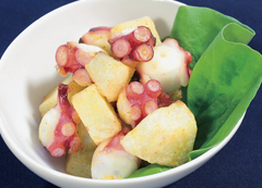 タコは2cm幅くらいに切って、軽く塩・胡椒で下味をつけておく