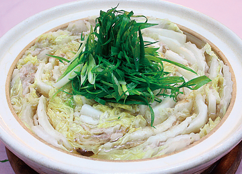 火が通り白菜が柔らかくなったら、千切りにした青葱をのせて出来上がり