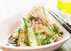 大根(5cm長千切り)-250g鶏ささみ-100g絹豆腐-1丁オクラ-2本胡瓜-1本みょうが-2本大葉-4枚白ごま-適量鰹節-適量