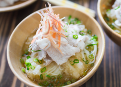 素麺ー2束豚⾁(しゃぶしゃぶ⽤)ー150gミョウガー1本⼈参ー1/4本⽣姜ー30g細葱ー4本