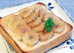 食パンにバターを塗り、5mmにスライスしたバナナを並べる
