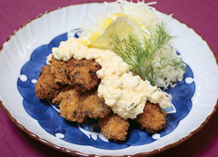 牡蠣ー100g小麦粉ー大さじ1玉子ー1/2個パン粉ー20g(みじん切りのパセリを少々混ぜる)★タルタルソース 茹で玉子(みじん切り)ー1個分 玉葱(みじん切り)ー1/8個 ラッキョウ(みじん切り)ー1個 マヨネーズー大さじ1.5 塩・胡椒ー少々 パセリ(みじん切り)ー少々 キャベツ(千切り)ー適量 レモン(スライス)ー1枚 ディルー適宜